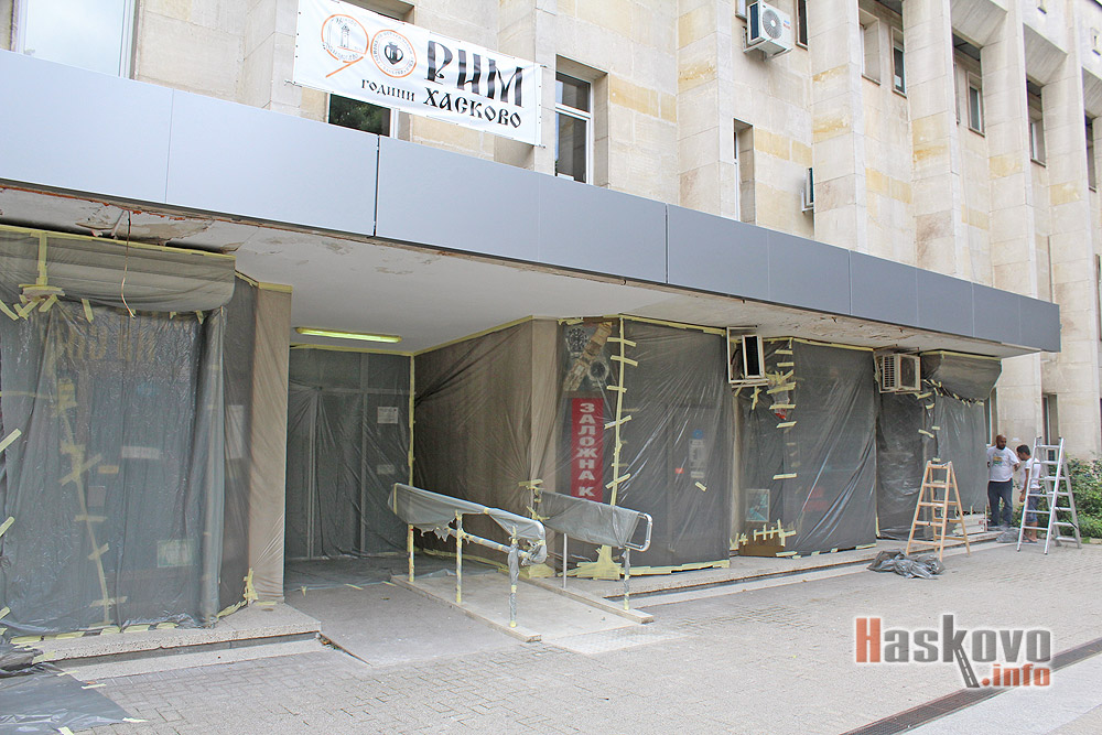 Входът на музея и библиотеката в Хасково е опакован заради ремонт.