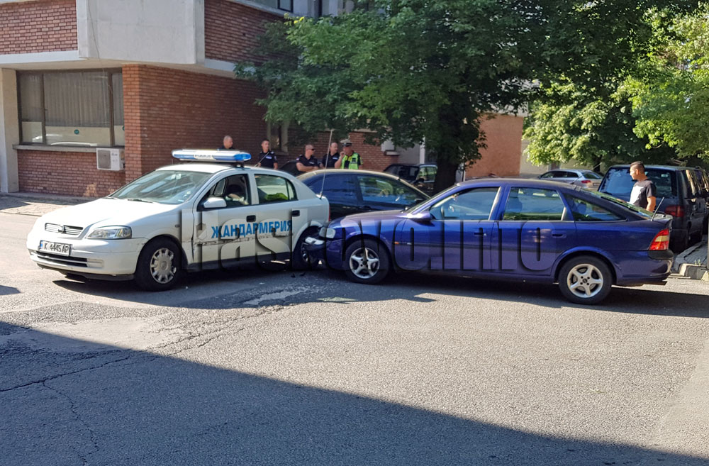 Днешният инцидент се случи на кръстовището на улиците „Георги Кирков“ и „Средна гора“. Колата на жандармерията се движела по „Кирков“, когато до бившето ОСО лек автомобил не осигурява предимство и се блъска в служебния опел.