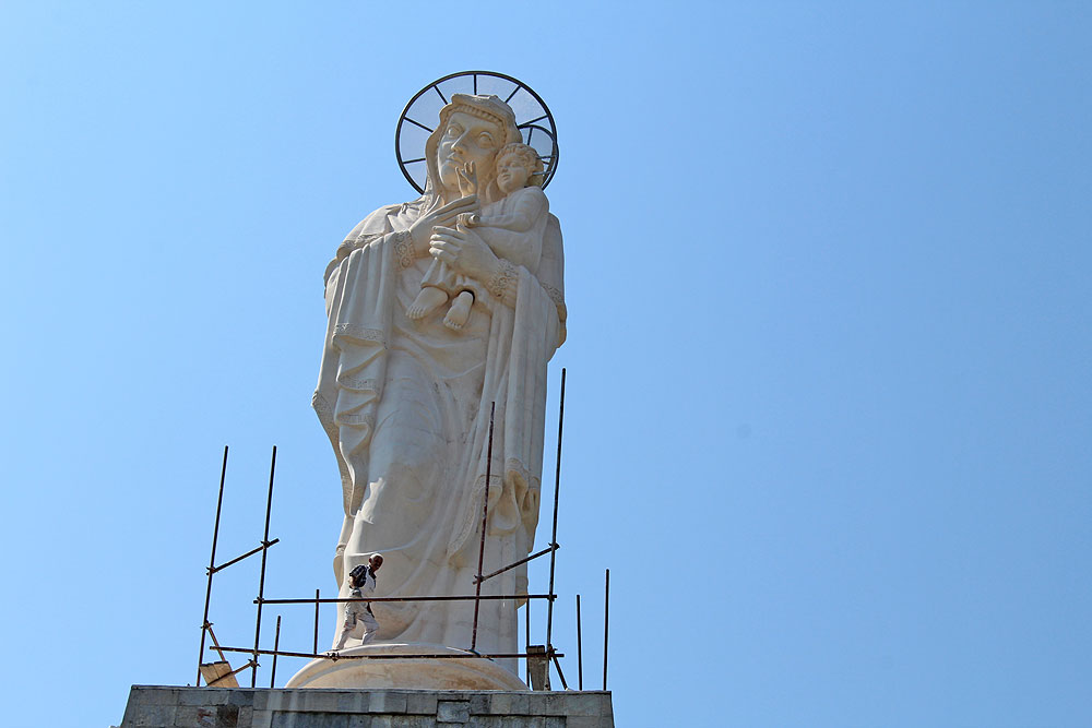 Приключиха ремонта на статуята на Богородица, продължават с постамента