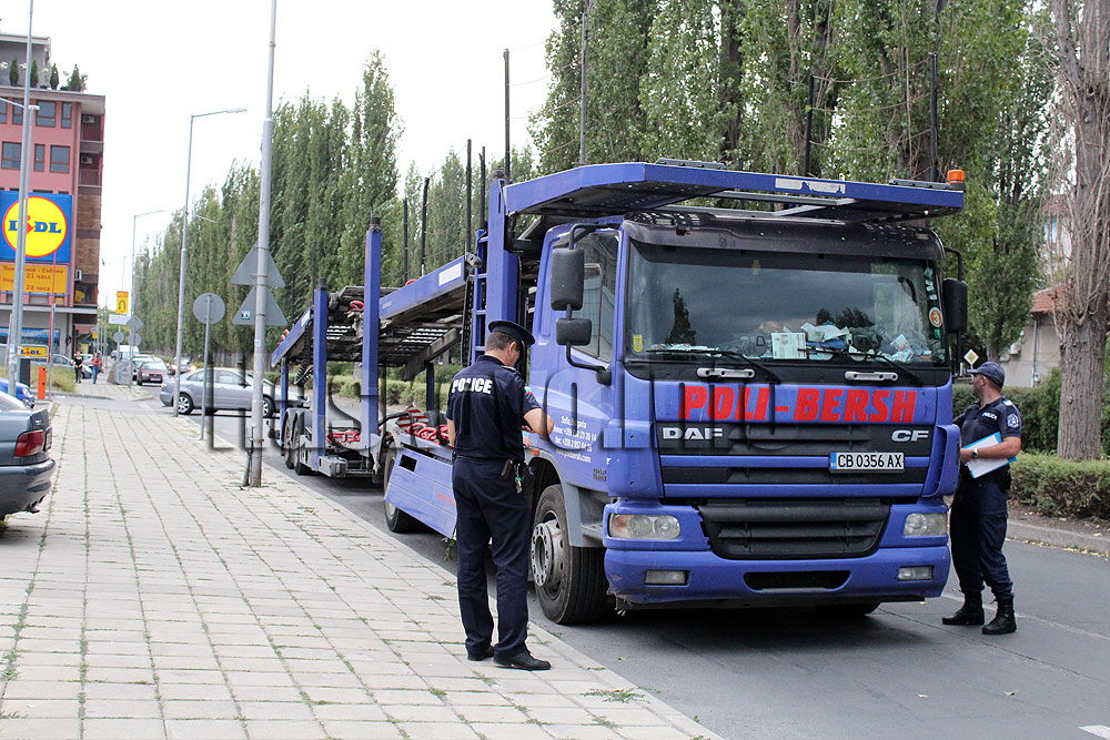 От общинска полиция глобиха тази вечер шофьора на автовоз, който го беше паркирал на булевард „България“ до площад „Лебеда“.
