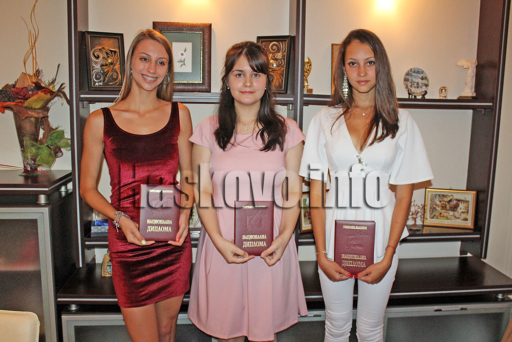 Пълните отличнички от матурите Жаклина Иванова от димитровградската ПМГ „Иван Вазов“, Антонина Попова от Езикова гимназия „Асен Златаров“ и Мариела Драгиева от ПМГ „Боян Петканчин“ получиха почетното отличие „Национална диплома“ на министерството на образованието и науката.