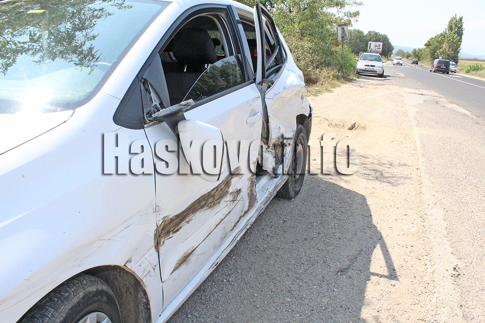 От удара с нараняване на лицето е 2-годишно момиченце от белия Фолксваген. Детето беше откарано с линейка в хасковската болница.
