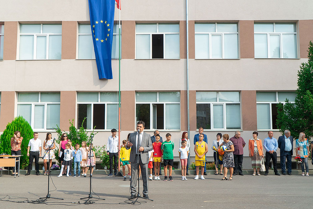 Областният управител пожела с вяра, надежда и любов учениците да прекрачват прага на училищата. За пореден път доказваме, че образованието е приоритет за държавната власт с въвеждането на иновативното образование и електронните учебници, каза още Дечев. Кметът благодари на екипа по проекта и директорите, които с любов работиха за обновяването на образователната инфраструктура по училищата. Вместо традиционното прерязване на лента, Димов подари на училището топки, ракети и други спортни пособия за ползване от децата.