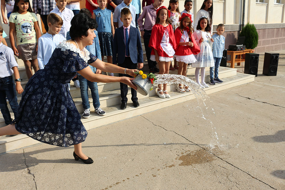 След официалната церемония ръководителите на учебните заведения лиснаха менче с вода, с което още веднъж пожелаха успешна, ползотворна и изпълнена с много нови знания учебна година.