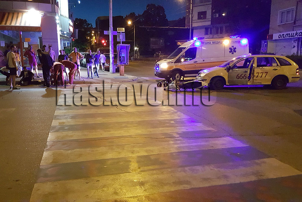 Такси и мотор с две момчета на него катастрофираха тази вечер на булевард „Съединение“ в Хасково.
