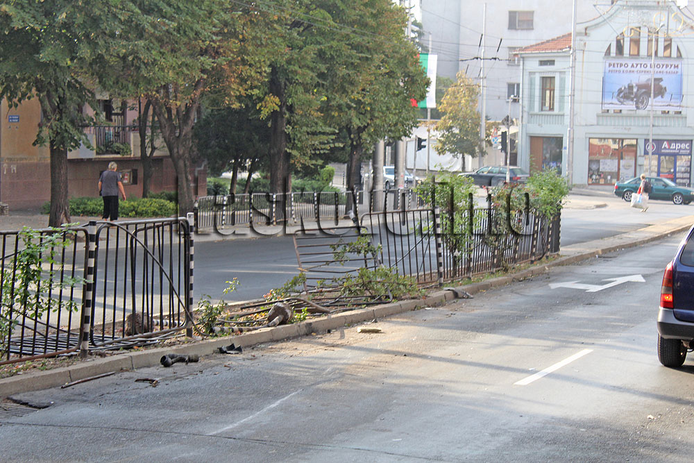 Разбита ограда след катастрофа на „Раковски“, полицията издирва шофьора