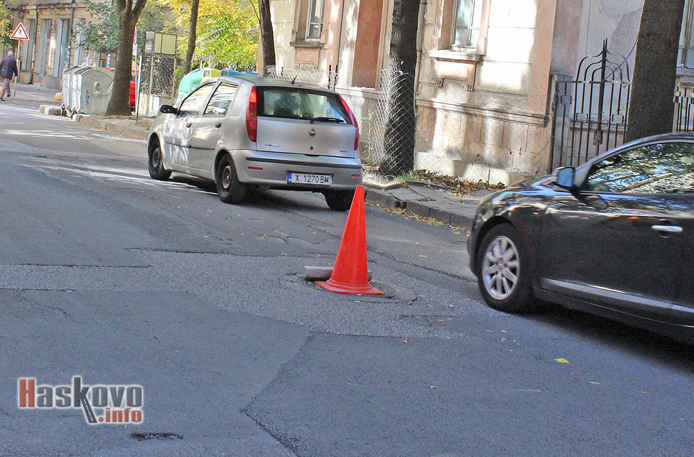 Конус е поставен върху опасна шахта на улица „Преслав“ до сградата на Административния съд в Хасково.