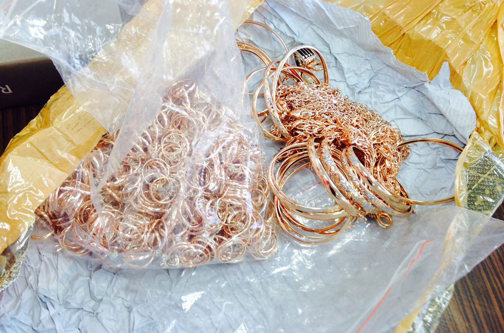 При извършената проверка се установява, че в пътната чанта на мъжа са укрити три, опаковани с кафяво тиксо пакети, съдържащи 158 накити – пръстени, медальони, гривни, синджири и обици. Според експертизата на вещото лице, откритите накити са от 14-каратово злато с общо тегло 621 грама и са на стойност над 35 000 лв.