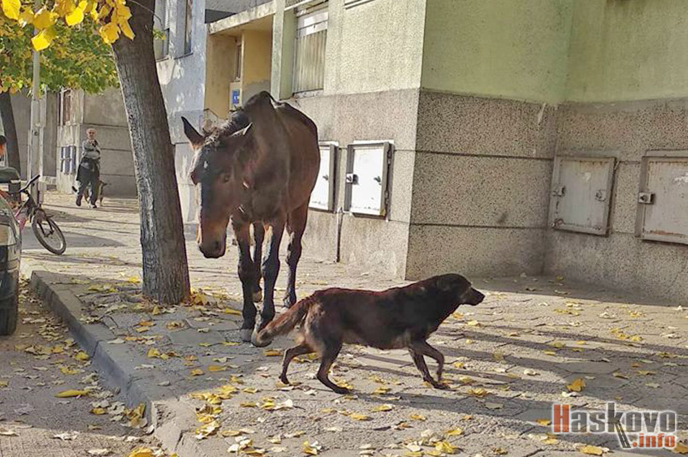 За безстопанствени кон и кучета на хасковската улица „Акация“ сигнализираха читатели на Haskovo.info.