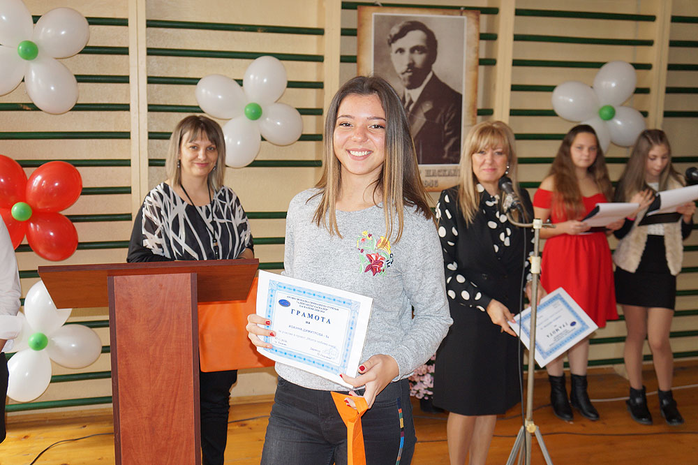 На тържеството бяха връчени грамоти и награди на ученици, изявили се в различните инициативи. Йоана Димитрова от 9 „а“ клас, специалност „Кетъринг“, е отличена с първо място в училищния конкурс за есе на тема „Знанията са по-скъпи от парите“. В кулинарна надпревара в категорията „Най-добър карвинг декоратор“ първа е Десислава Чипилова също от 9 „а“ клас, а в категория „Най-добър декоратор на сладки“ първото място е за Дарина Иванова от 12 „г“ клас. Първи в състезанието по тенис на маса е Николай Джамов от 11 „в“ клас. Грамоти получиха и участниците в проекта „Моята любима книга“, реализиран във връзка с Националната седмица на четенето.