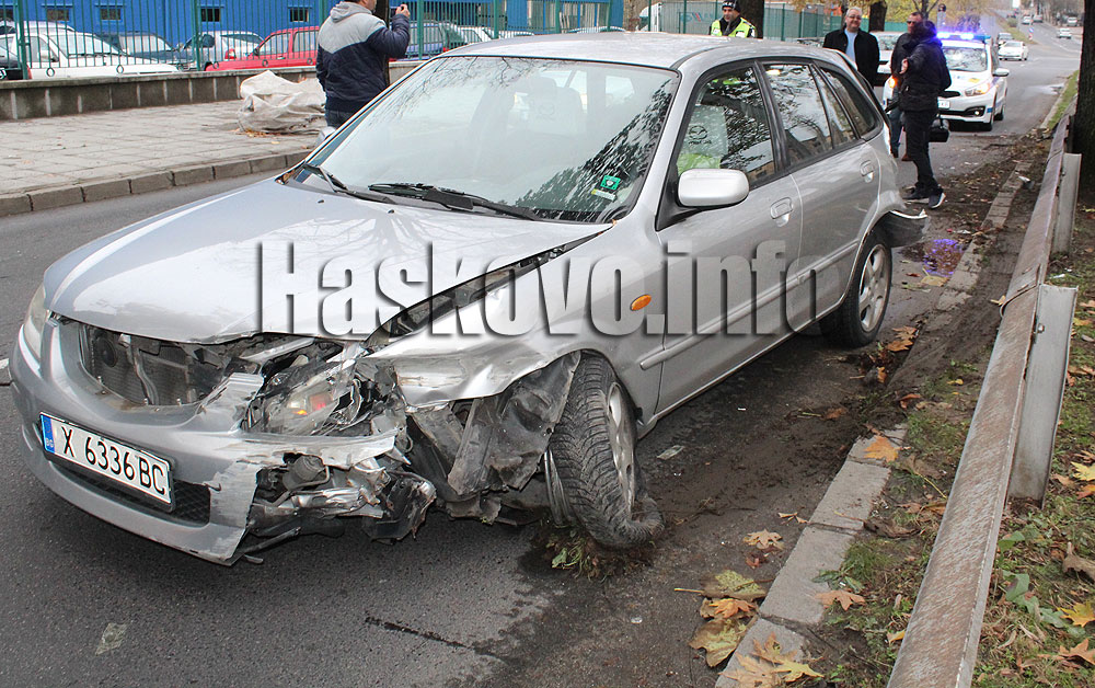 Автобус и лек автомобил Мазда катастрофираха на булевард „Васил Левски“ в Хасково.