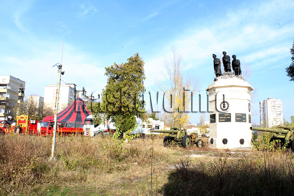 Вдигнаха цирк до паметника на Родопци в Хасково