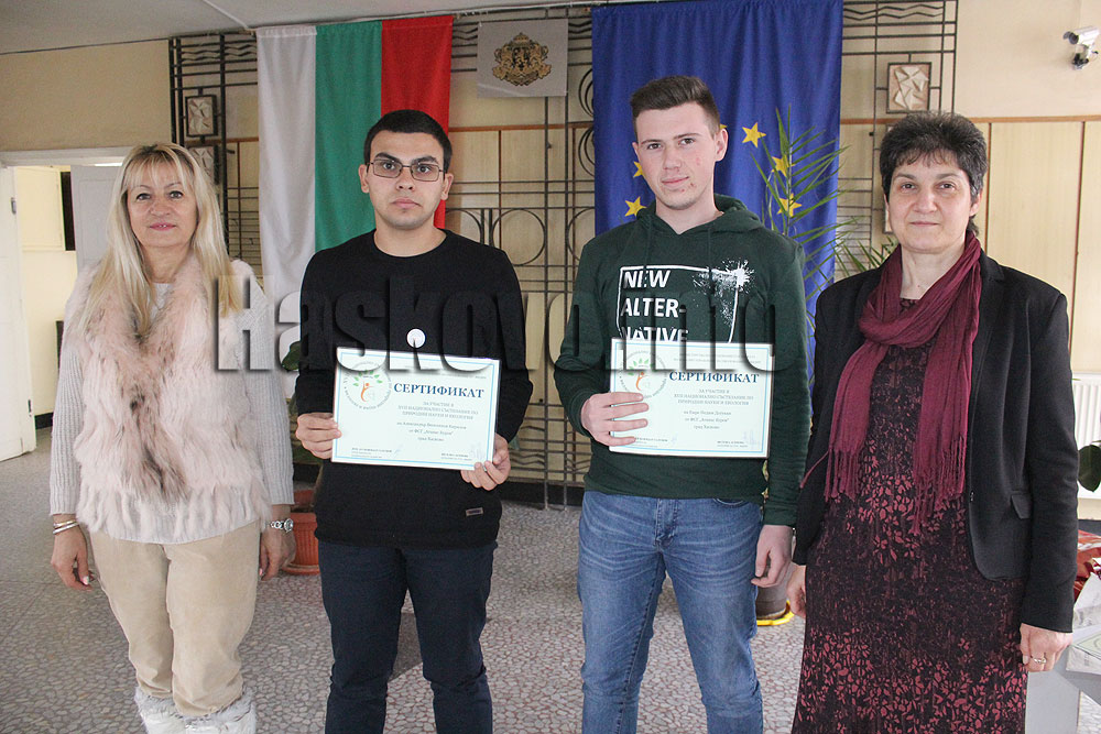 Учениците Александър Кирилов и Емре Догукан от 12 и 11 клас на хасковската ФСГ „Атанас Буров“ и техните ръководители Десислава Василева – старши учител по химия и опазване на околната среда и Катя Христова – старши учител по биология и здравно образование представиха достойно Хасковска област и защитиха отлично своя проект – Досиетата „П“. Той беше класиран на четвърто място в страната. По молба на националната комисия ще излезе публикация за проекта в научно електронно списание.