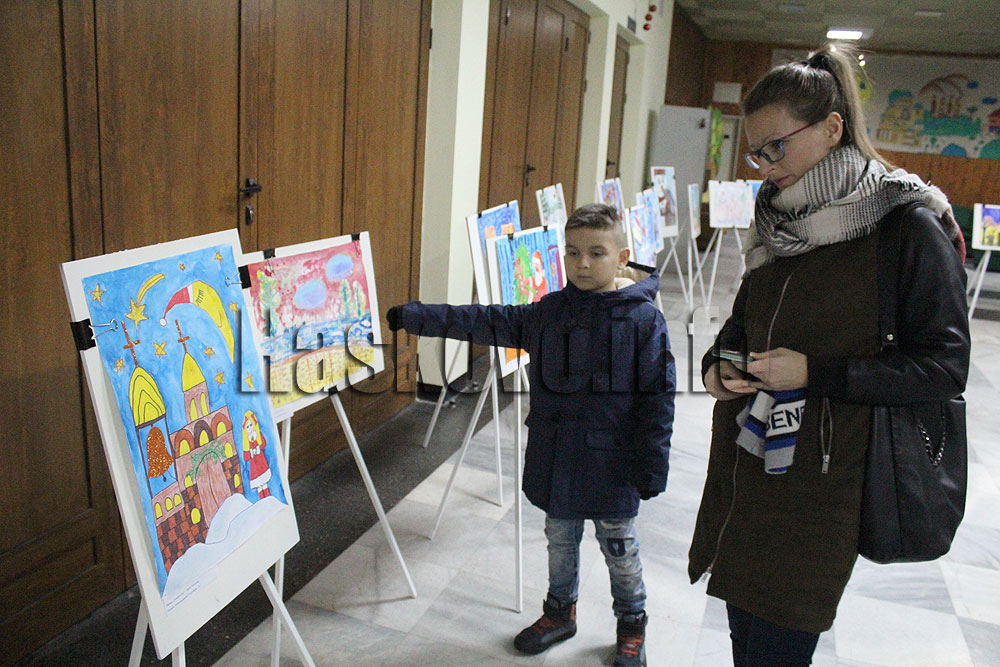 Тази вечер в Младежкия беше открита изложбата „Рисувам коледна песен“, която е съпътстващо събитие към фестивала. За нея рисунки изпратиха деца и младежи от цялата страна, като Елена Цветкова отличи специално малките художници от детска градина „Слънце“ в град Левски и от хасковските школи „Дъга“ и „Пастело“. На откриването пяха децата от вокална група „Орфейче“ с ръководител Катя Демирева.