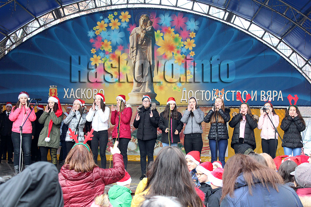 Десетки хористи се включиха в концерта „С песни край елхата“ на сцената на площад „Свобода“ в Хасково.