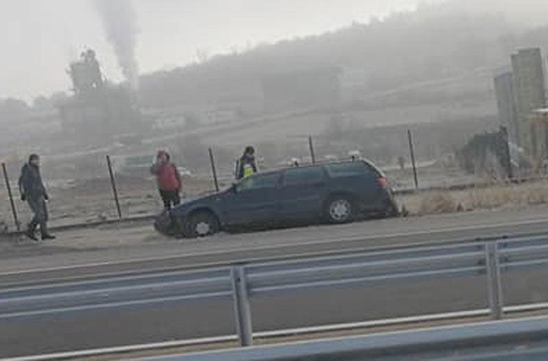 Кола катастрофира на пътя между Хасково и Димитровград в района на строящите се заводи.