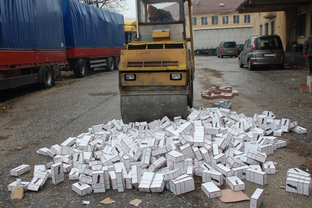 При последната процедура на 14 декември, чрез механично нарязване, бяха унищожени 8650 чифта чорапи с лого на световноизвестна марка. Чрез натрошаване бяха унищожени 893 парфюма и тоалетни води, носещи знаци на три световноизвестни бранда, както и 428 метални ключодържателя с логото на две марки автомобили.