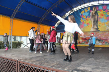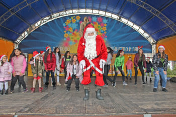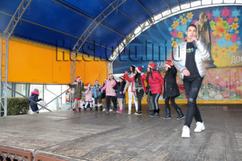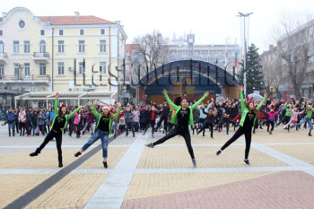 Всички се събраха на обяд танцуваха и се веселиха в продължение на час. Проявата е в подкрепа на 17-годишната Адриана Андреева и се организира от балет „Рона“ с ръководител Милена Налбантова. На площада бяха ученици от 5, 6 и 7 клас на училище „Св. Климент Охридски“, деца от училището в харманлийското село Иваново, Младежкия център, ансамбъл „Южняци“, като се включиха и минаващи през площада. Музикален поздрав от сцената отправиха певците Доротея Жекова и Хари Тончев. Пристигна Дядо Коледа, там беше и хъскито Елис.