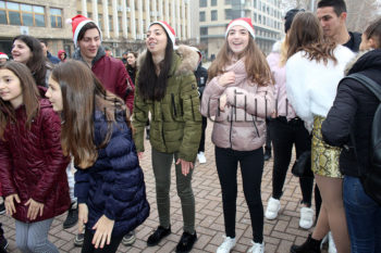 Много деца и младежи се включиха в коледния флашмоб „Въздух за Ади“ на площад „Свобода“ в Хасково.