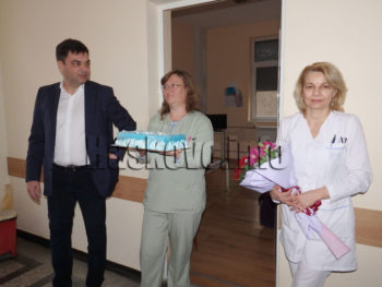 Градоначалникът връчи на екипа на родилното отделение торта с пожелание за спорна работа през новата година.