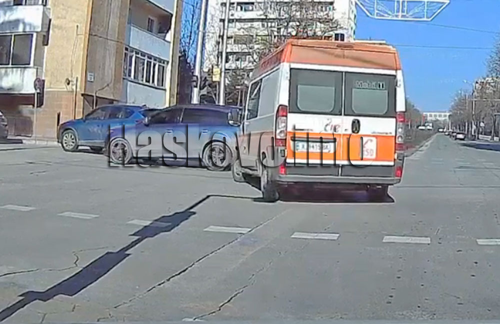 Джип засече линейка на кръстовище в Хасково – ВИДЕО