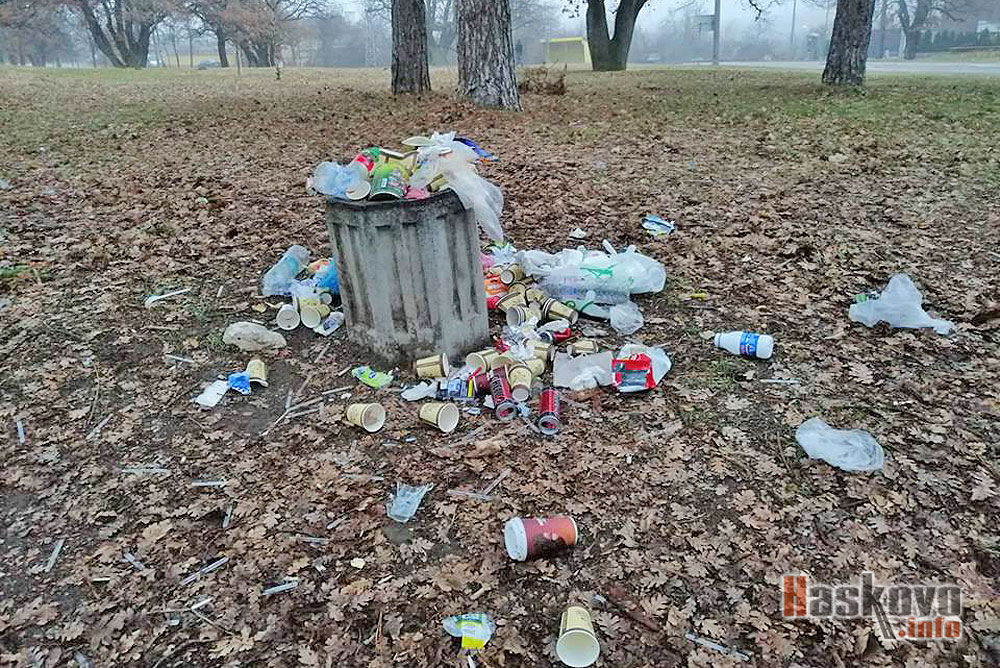 Кошове в хасковския парк „Кенана“ са препълнени с боклуци, които вече са разпилени по земята.