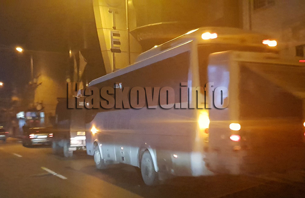 Автобус беше докаран за щателна проверка пред полицията в Хасково снощи, изпратиха снимки читатели на Haskovo.info.