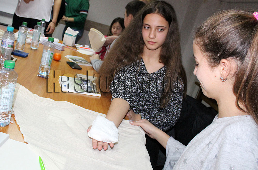 Днес на обучение бяха 20 ученици в 6 и 7 клас от димитровградското училище „Любен Каравелов“. Доброволецът Росен Кузев, който е в 11 клас на хасковската ПМГ „Боян Петканчин“ първо им демонстрира как се прави превръзка при изгаряне. След това децата я направиха сами. Росен е преминал обучение, за да води такъв курс.