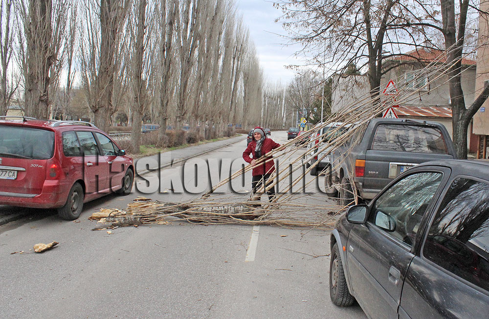 За късмет по това време по тротоара не са минавали хора. Възрастна жена от съседния жилищен блок излезе и с помощта на репортерите разчистиха пътя. Докато бъдат премахнати падналите клони се образува колона от чакащи автомобили.