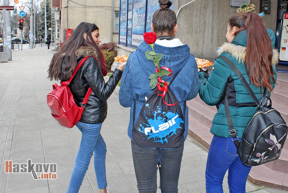 В навечерието на Свети Валентин из Хасково все по-често се забелязват момичета с цветя.