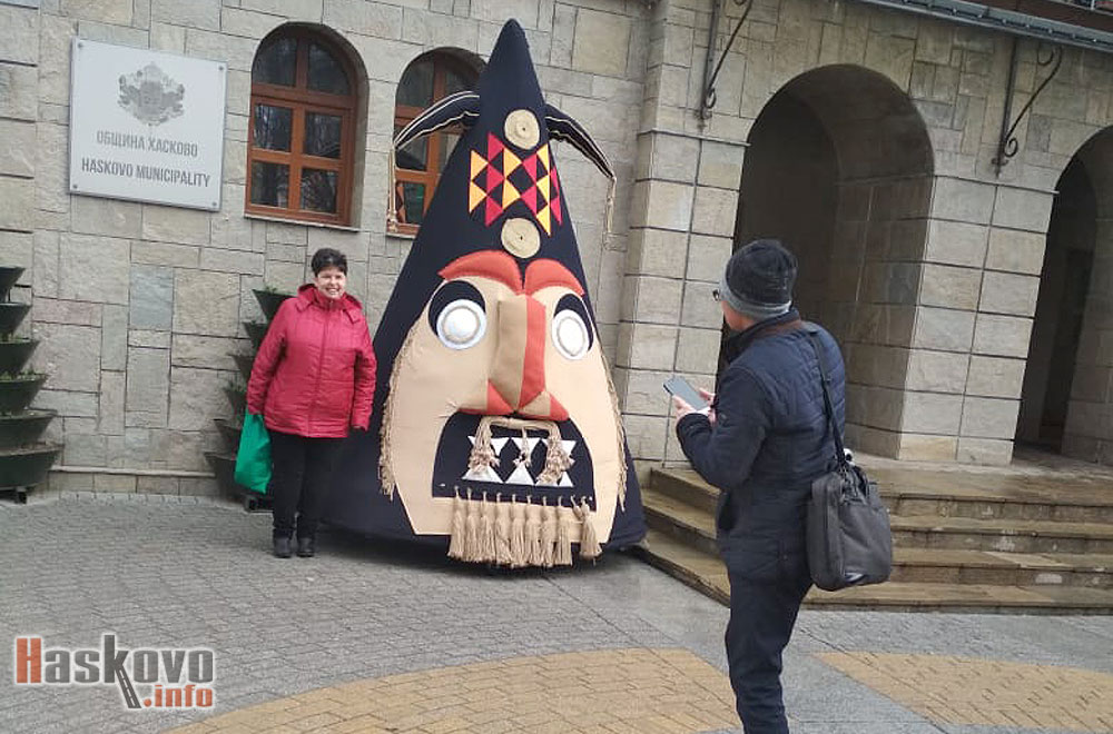Осем гигантски кукерски маски от Ямбол са поставени до 20 февруари пред сградата на кметството в Хасково.