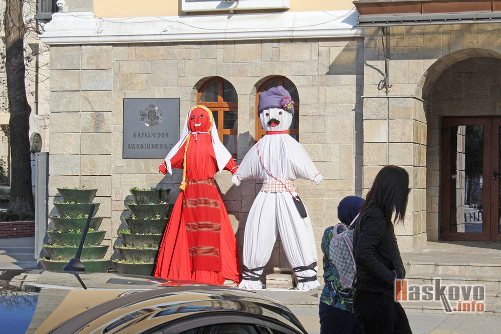 2.5-метрови Пижо и Пенда вече радват децата пред сградата на кметството в Хасково.