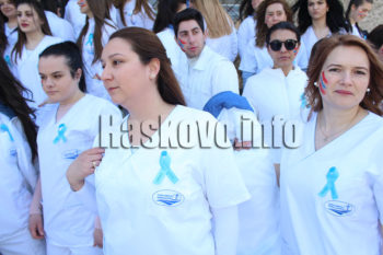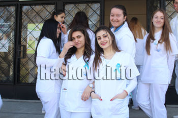 Масово студентите в Медицинския филиал в Хасково подкрепиха протеста. Те от вчера носят сини протестни лентички.