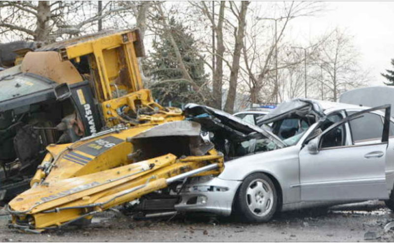 Мерцедес се заби в багер и го преобърна, двама са в болница