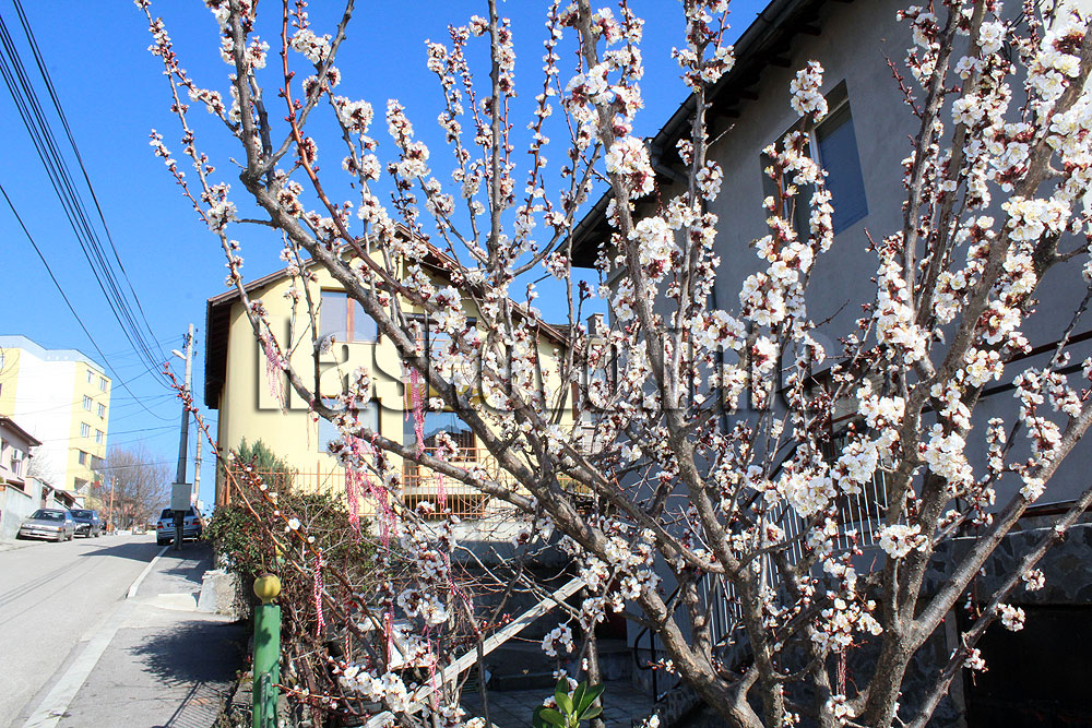 В хубавото време започнаха да цъфтят и първите овошки в Хасково. Кайсия до Езиковата гимназия „Асен Златаров“ е обсипана в цвят, като на нея са вързани десетки мартенички.